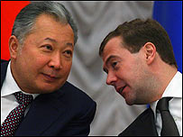 Аммо чоршанба куни Қирғизистон Президенти Бакиевнинг Москвада Президент Медведев билан учрашувдан кейин қилган баёноти Вашингтонга берилаётган ишораларнинг оҳангига мос тушмаган.