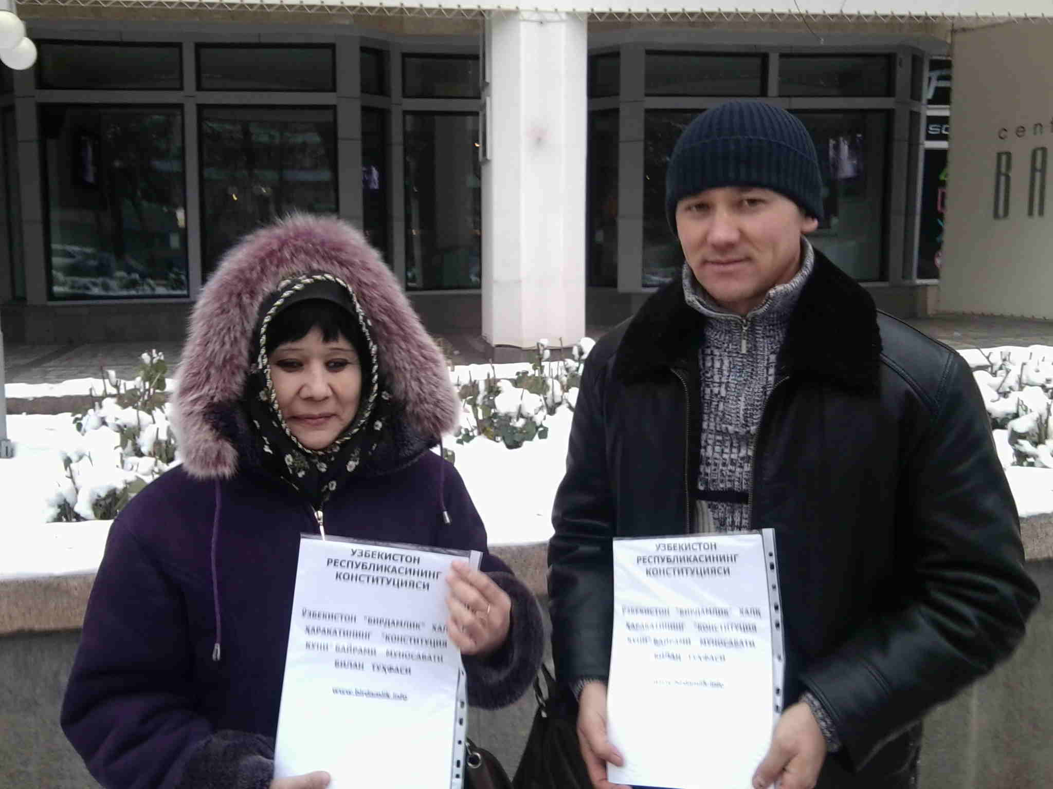 – “Ўзбекистон Конституциясининг матнини топиб,чоп этиб, уни бу ердаги ўзбекистонликлар орасида тарқатиш каби хайрли ишга ўз ҳиссамни қўшганимдан жуда хурсандман, чунки биз ўзбекистонликлар ўз ҳуқуқларимизни қанчалик яхши билсак ва фарзандларимизга ўргатсак шунчалик яхши.Мен барча ватандошларим “Бирдамлик” фаоли Адхам Тангриев каби ҳаракатчан ва курашчан бўлишини истардим” – дейди “ Бирдамлик” нинг фаоли Маматқулова Муборакхон.
