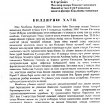 Яшаётган уйимни менинг номимга расмийлаштириб, яъни давлат ордери ёзиб берилишини ва уйимдан Хаитова Гулнорани оиласи билан чиқариб беришларингизни ва мен ва болам тинч ҳаёт кечиришимизни таъминлашларингизни сўрайман. Бу зўравонларга барҳам берилмаса мен 2011 йил 15 августдан бошлаб оммавий ахборот воситаларидан эълон қилган ҳолда Жиззах вилоят ва турли жойларда, бозор дарвозалари,вилоят ва туман ҳокимлиги биноси, прокуратура ва маҳалла бинолари олдида ўзимнинг норозилик намойишларимни ўтказаман.