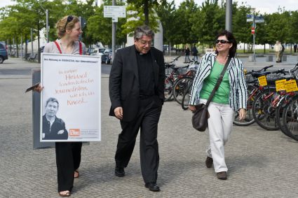 Немецкая студентка, участвующая в акции, тоже весь день пыталась рассказывать берлинцам о положение в Узбекистане, об осуждении на 10 лет лишения свободы Абдурахманова только потому, что он был настоящим журналистом.