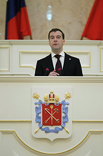Менее чем через неделю после поездки в Санкт-Петербург президент России Дмитрий Медведев вернулся в город снова. На этот раз для участия в конференции, посвященной 150-летию отмены крепостного права: «Великие реформы и модернизация России». В родном городе президент примерил на себя роль великого реформатора.