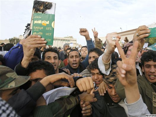 Аксил-ҳукумат намойишлар бутун Ливия бўйлаб ёйилди. Вужудга келган вазият Муаммар Қаддафий режими қулаш ёқасига келганидан ишоратдир, демоқда кузатувчилар.
