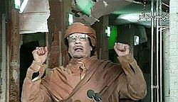 22 февраля с обращением к народу Ливии в прямом эфире государственного телевидения выступил лидер страны Муамар Каддафи. Он сообщил, что не намерен оставлять власть или покидать свою родину. По его словам, он хочет «умереть как мученик в своем доме».