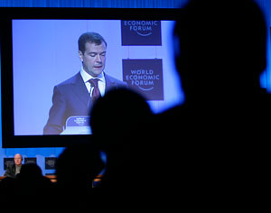 В среду вечером президент России Дмитрий Медведев впервые в качестве главы государства выступил на международном экономическом форуме в Давосе. В 2007 году Медведев возглавлял делегацию в качестве первого вице-премьера, в 2009 году во главе делегации форум посещал председатель правительства Владимир Путин, и наконец в 2011 году форум посетил глава государства. «Мы уже слушали ваше выступление несколько лет назад и думали, что перед нами будущий крупный государственный деятель, — напомнил Медведеву потом ведущий форума и его идеолог Клаус Шваб. — Теперь мы видим перед собой действующего крупного государственного деятеля.»