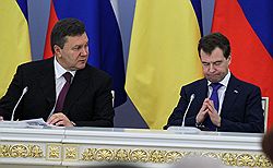 Господа Медведев и Янукович общались вчера в подмосковной резиденции российского президента в Горках в рамках заседания двусторонней межгосударственной комиссии. Обилие задействованных в переговорах министров вселяло надежду, что встреча закончится не менее громко, чем апрельская, когда в Харькове было подписано соглашение о продлении до 2042 года пребывания Черноморского флота РФ в Крыму. Только с российской стороны в Горки съехались больше трех десятков министров, чиновников разных уровней и топ-менеджеров крупных компаний. Особые надежды, в первую очередь у украинцев, были связаны с присутствием здесь главы «Газпрома» Алексея Миллера, министра обороны Анатолия Сердюкова, главы МИДа Сергея Лаврова.