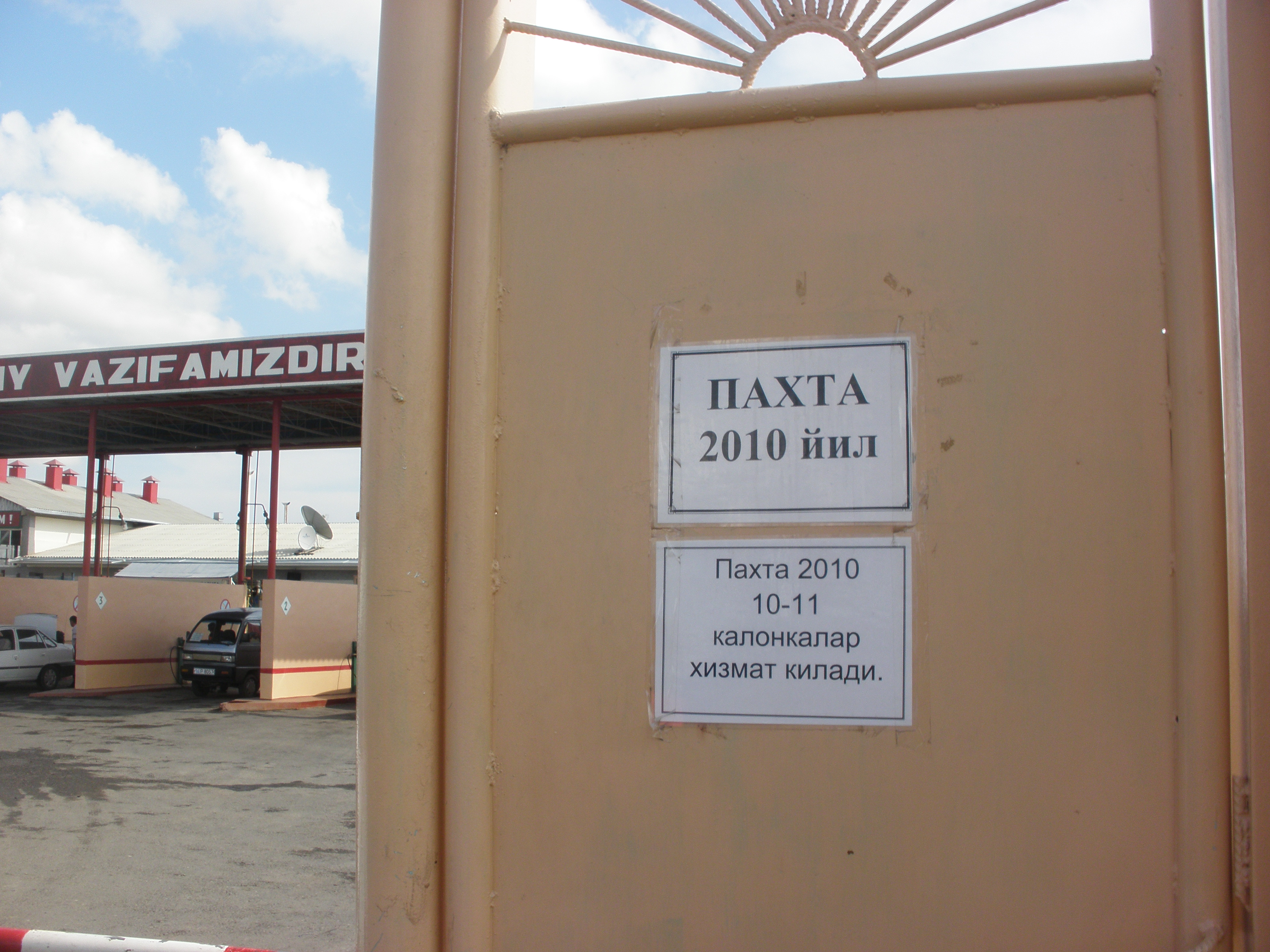 работы на некоторое время (около трех месецев). В основном хлопок собираеся вручную, на полях нет хлопкоуборочной техники (потому что уничтожен завод машиностроения в г. Ташкенте). Также не функционируют многие ткацкие фабрики (например хлопкокомбинат в г. Анжижане, где когда-то тв три смены работало 10000человек, а в настоящее время в этом здании продают привозимые из других стран товары. Фото