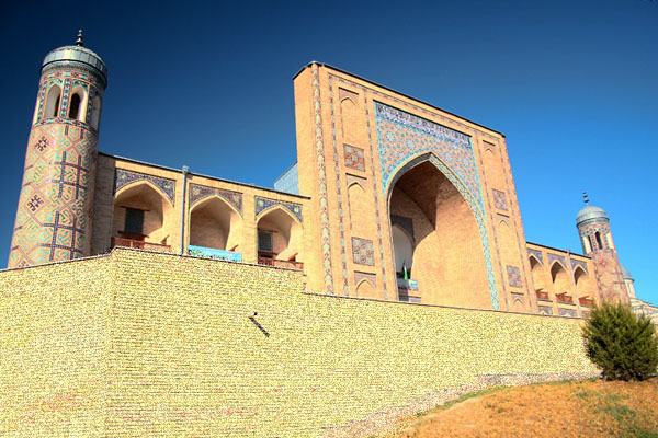 Дальше — к рынку Чорсу, старейшему в Ташкенте. И только здесь, кажется, ничего не изменилось: все те же лепешки с кунжутом, только что из печи, горячие, свежие, румяные, десятки видов курта — шариков из соленого творога самой разнообразной величины, тысячи ароматов специй, арбузы, дыни, персики, помидоры всех сортов, ткани, одежда, толпы народа, шум, суета, оживленная торговля — настоящий дух среднеазиатского базара. Этот старый город не просто место торговли и ремесленничества, а душа Ташкента. Рядом — медресе Кукельдаш, крупнейшая из сохранившихся в Ташкенте и Средней Азии вообще. Таким город был и четыре века назад.