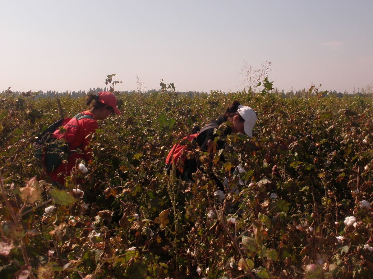 собирают в полях хлопок. Вот, что сообщает правозащитница Елена Урлаева «Дети работают даже в воскресенье, визуально было видно, что хлопок собирали совсем маленькие дети. Все учебные заведения в этом районе закрыты, учителя вместе с детьми собирают хлопок. 17 сентября 2010 года одной учительнице из школы 7 стало плохо на поле, ей вызвали