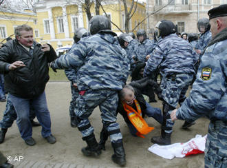 Исполнительный директор движения «За права человека» оказался первым и последним человеком, которому дали возможность спокойно пообщаться с журналистами. В дальнейшем, едва только кто-либо из активистов оппозиции оказывался в центре внимания представителей СМИ, как милиция тут же оцепляла всю группу и, оттеснив журналистов от оппозиционеров, уводила (а иногда и уносила) последних в омоновский автобус. После каждого такого случая сотрудников прессы выдавливали с Триумфальной площади в сторону метро. Всего, по разным данным, были задержаны от 10 до 20 человек, в том числе организаторы акции оппозиции Константин Косякин и Эдуард Лимонов.